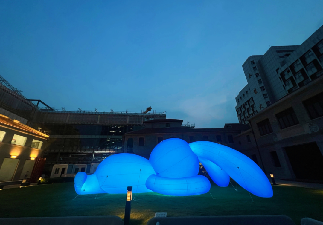 上海文学馆(在建中)扆虹园前的大草坪上,一只11.4米长的蓝色巨兔“浮生闲月”悠然自得,仰天望月。而这里更是一个互动空间,主办方邀请观者与巨型蓝兔一同躺卧在草坪上,沉浸于这片宁静的浮世中,感受月夜下的浪漫与平和。